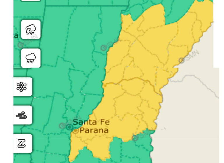 El Servicio Meteorológico Nacional (SMN) emitió una alerta amarilla por lluvias y tormentas para este lunes y martes en la