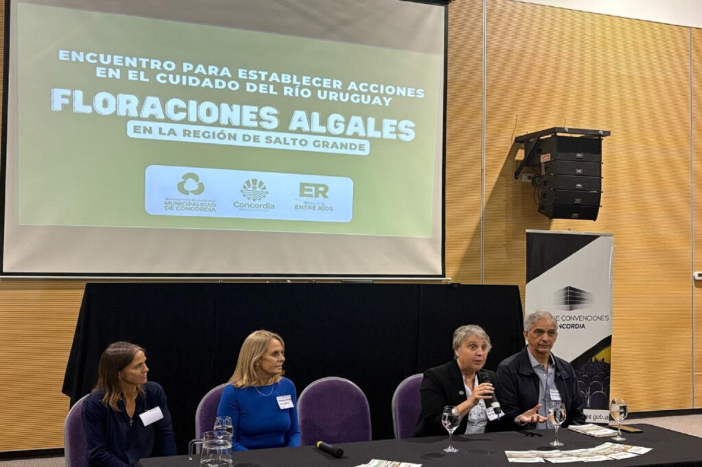 En tanto, los representantes de la Comisión Técnica Mixta de Salto Grande, Maximiliano Bertoni y Facundo Bordet, detallaron las acciones de monitoreo que llevan a cabo en el embalse, la caracterización del mismo en función de los forzantes que condicionan la calidad del agua, y los principales resultados en cuanto a nutrientes, clorofila, blooms y toxinas. Gustavo Yerien, en representación de la Comisión Administradora para el Fondo Especial de Salto Grande (Cafesg), presentó los proyectos y obras realizados por el organismo en materia de sistemas de saneamiento, así como el estado actual de los mismos.