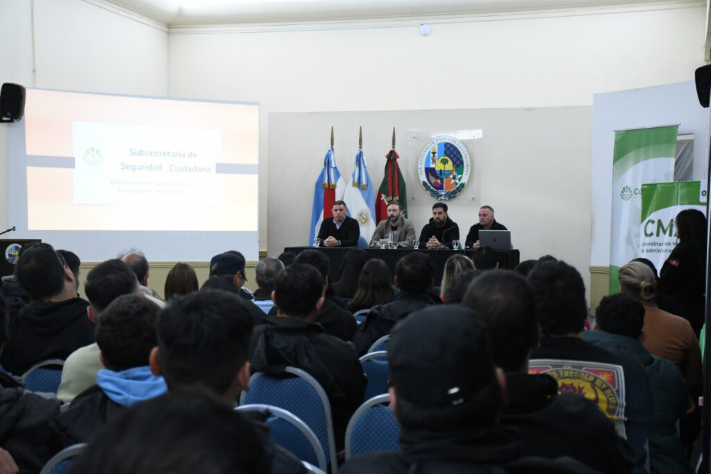 En la jornada de este miércoles se desarrolló una nueva jornada de especialización anual en seguridad ciudadana destinada a los agentes de la Subsecretaría de Seguridad Ciudadana, la cual contó con la presencia del Intendente Francisco Azcué, acompañado por el Secretario de Gobierno Luciano Dell´Olio, el Subsecretario de Seguridad Ciudadana Claudio Purgart y el Director de Prevención y Seguridad Municipal Martín Amiano.